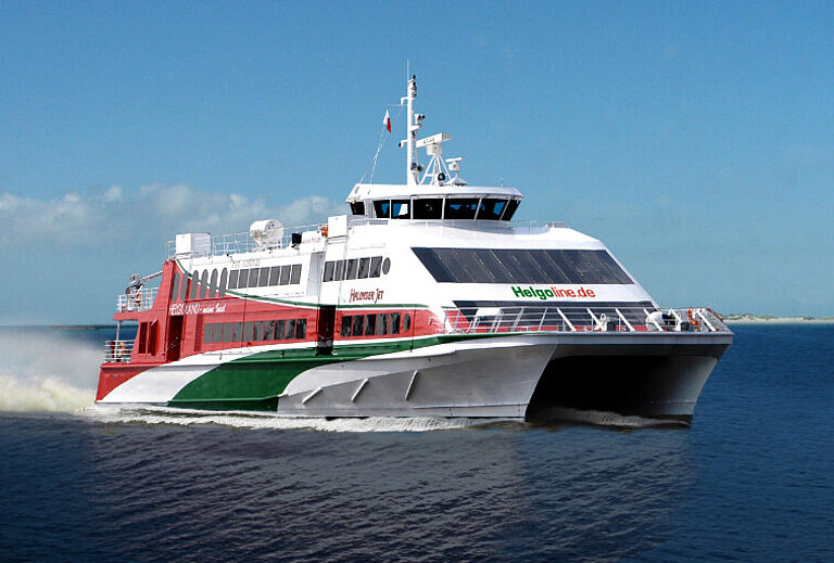 Der Katamaran "Halunder Jet" benötigt für die Strecke ab Cuxhaven nur 75 Minuten. Von Hamburg dauert es 3 3/4 Stunden bis nach Helgoland.
