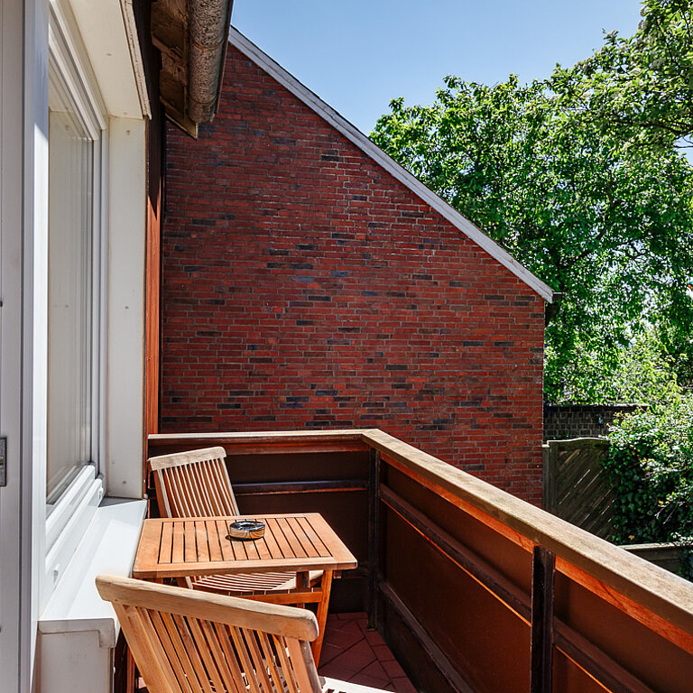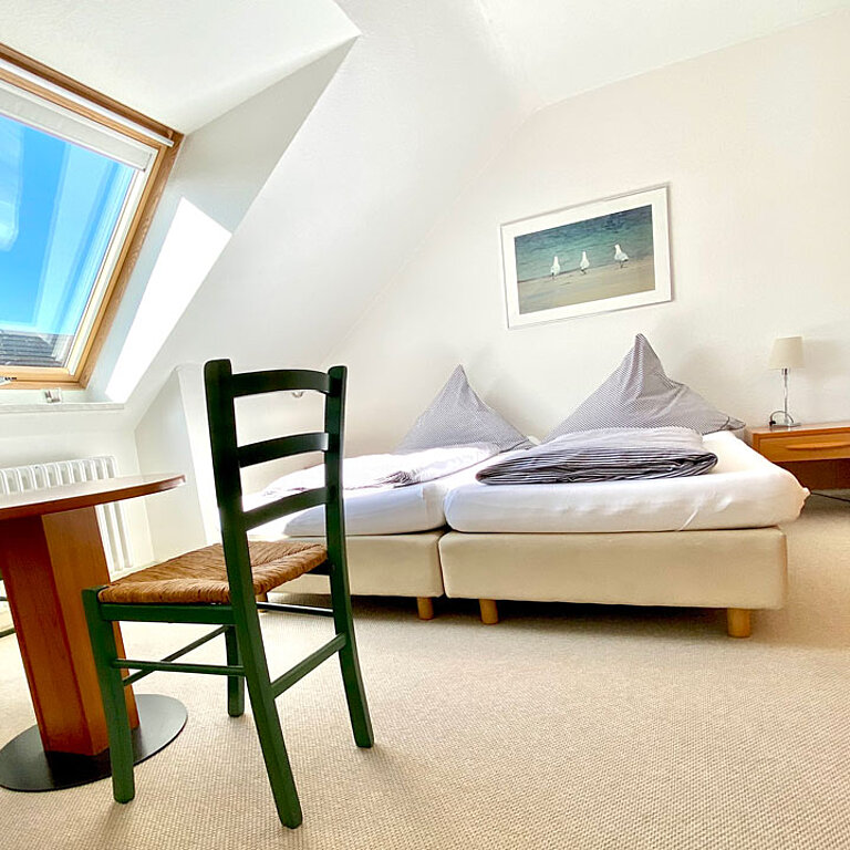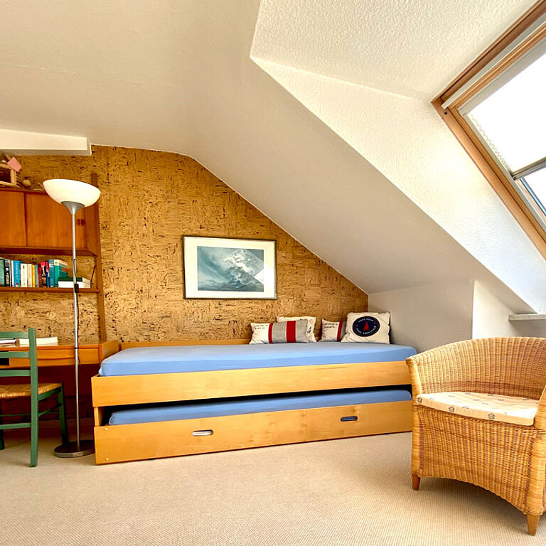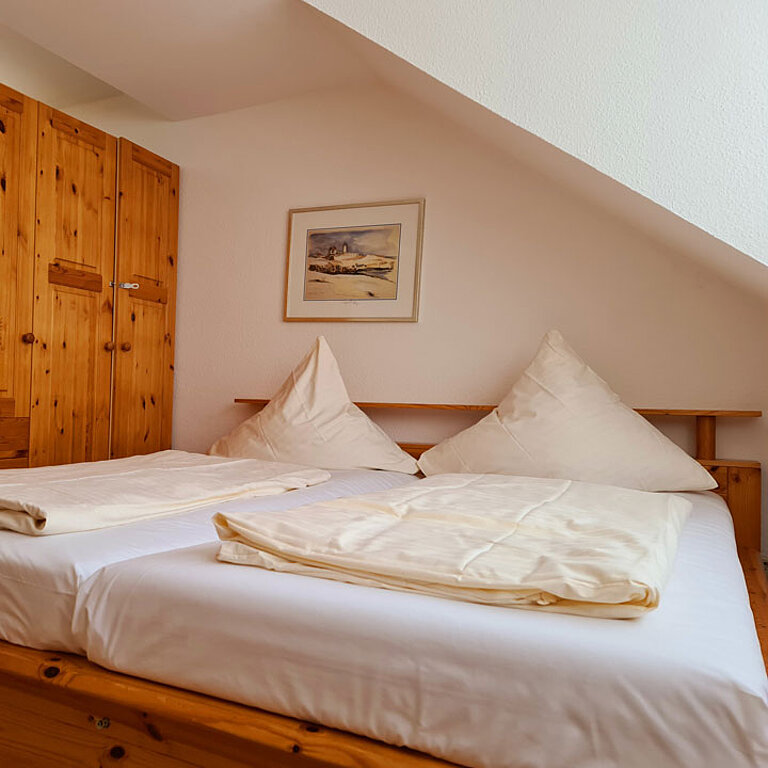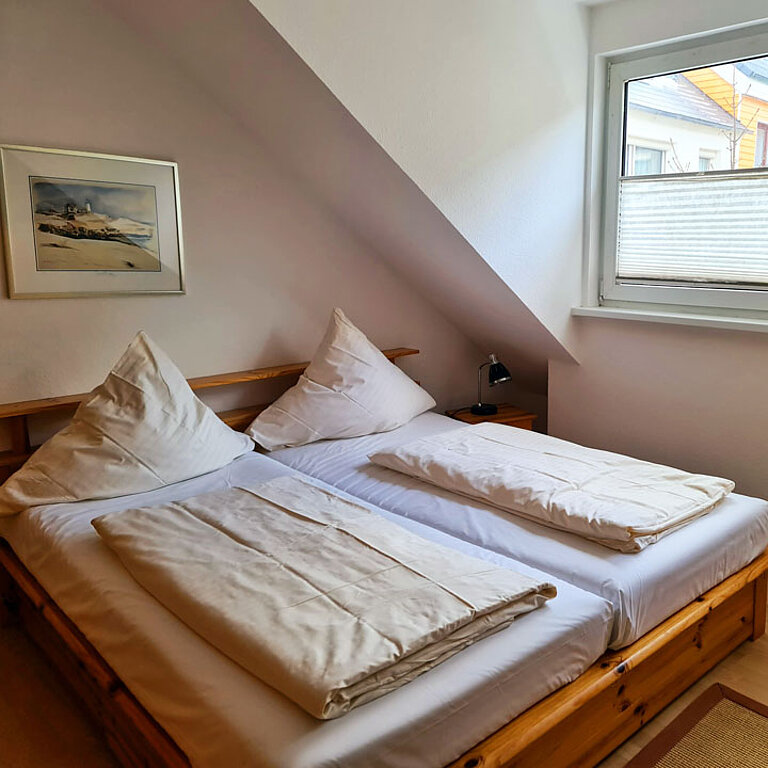 Die Ferienwohnung Germania befindet sich im Obergeschoß des gleichnamigen Hauses im Oberland. Sie ist aufgeteilt in einen Schlafbereich und einen Wohn-/Essbereich mit Küche. Die Wohnung liegt zur Inselseite.