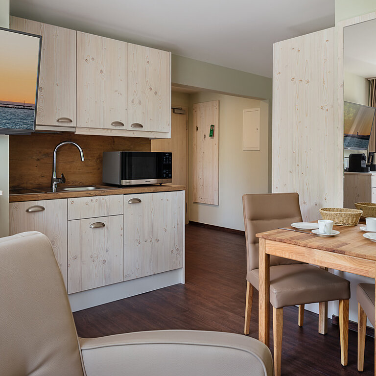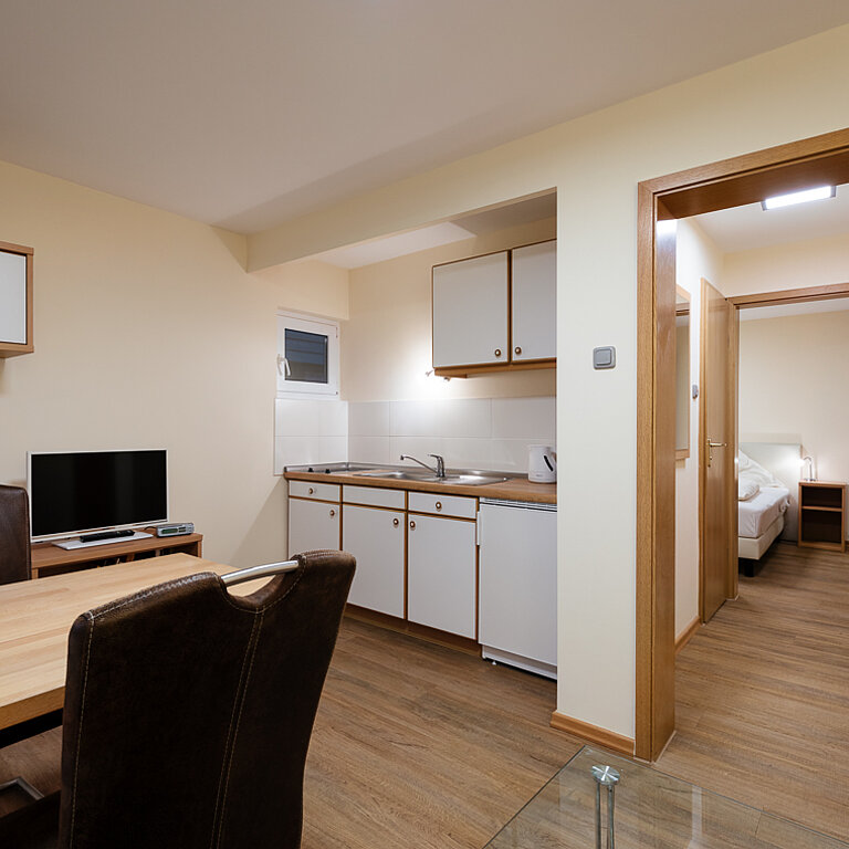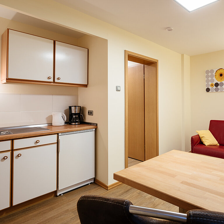 Wenn Sie allein oder mit 2 Personen verreisen und nicht mehr als ein Zimmer mit einer Pantry-Küche für Ihren Urlaub benötigen, sehen Sie sich auch in unserem Bereich der Apartments um.