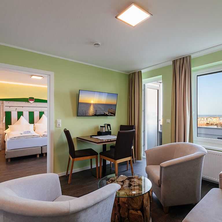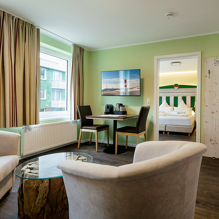 Der Wellness-Bereich, der Fitnessraum und der Gartenpark des benachbarten Hotel Rickmers Insulaner stehen Ihnen frei zur Verfügung. Weiteren Service, z. B. Frühstück, können Sie je nach Wunsch dazu buchen.