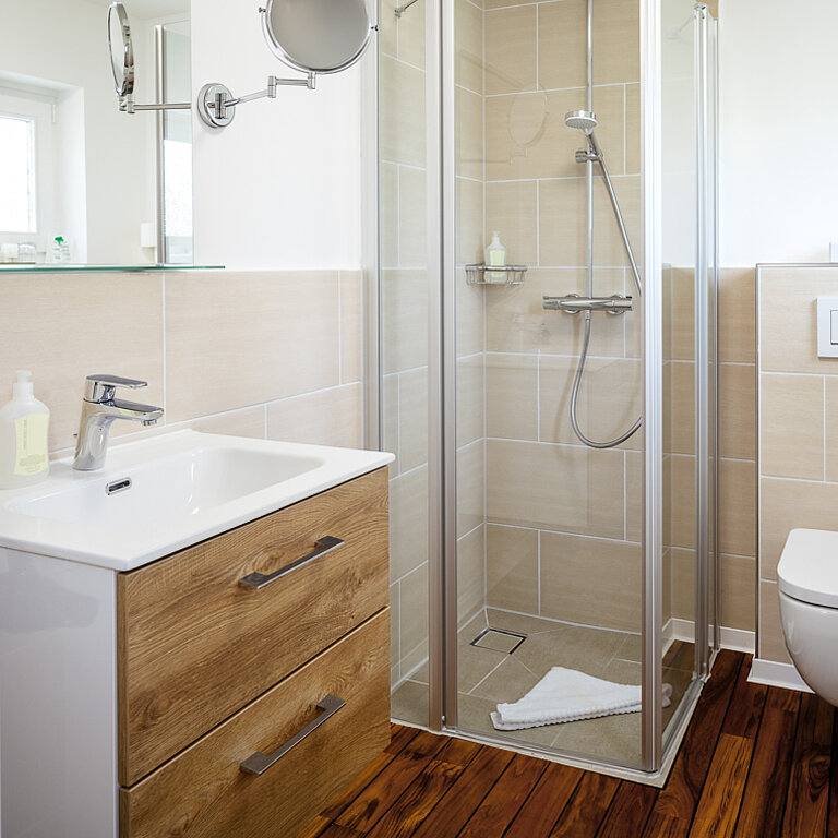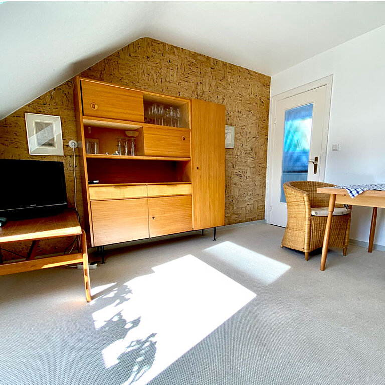 Sie wohnen im Haus "Insulaner Ferienwohnungen" in einer schön ausgestatteten, modernen Ferienwohnung zur Inselseite. Die Wohnung besteht aus einem Wohnbereich mit Küche, einem Schlafzimmer und einem Badezimmer mit Dusche.