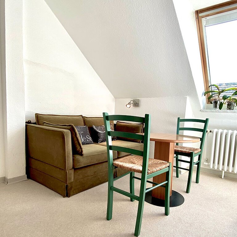 Es liegt besonders ruhig im Unterland und doch nur fünfzig Meter entfernt von der Siemens-Terrasse mit den kleinen Geschäften und gastronomischen Angeboten.