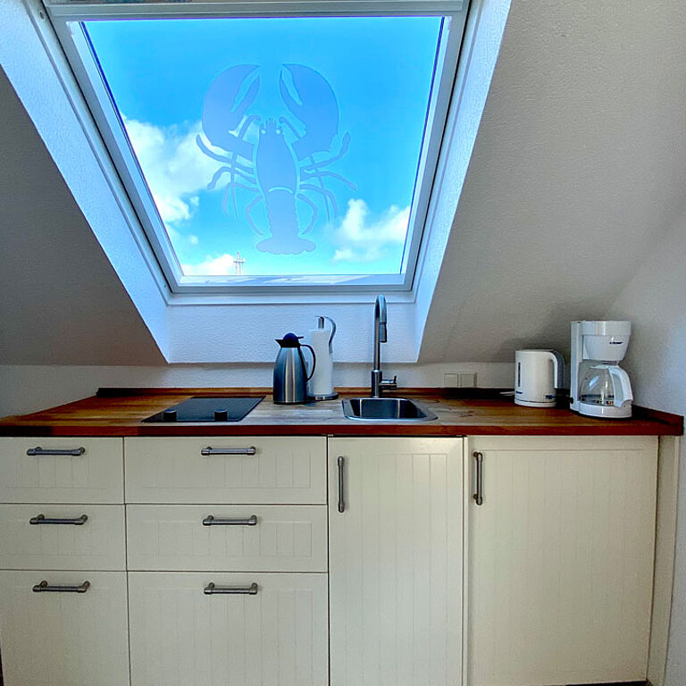 Diese gemütliche Wohnung liegt in den “Hummerklippen Ferienwohnungen” auf dem Oberland von Helgoland. Sie befindet sich im Dachgeschoss und ist zur Inselseite gelegen.