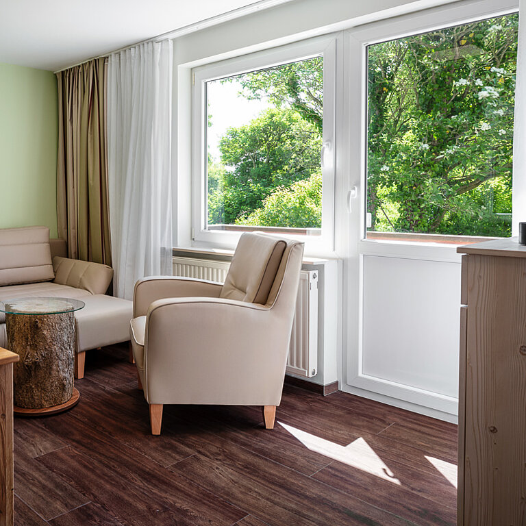 Der Wellness-Bereich, der Fitnessraum und der Gartenpark des benachbarten Hotel Rickmers Insulaner stehen Ihnen frei zur Verfügung.